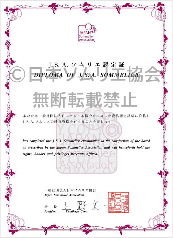 Japan Sommelier Association (J.S.A.) is pleased to announce that it has been possible to take certification examination for the designation of Sommelier and Wine Expert in English since 2023.Details and eligibility requirements are as follows.